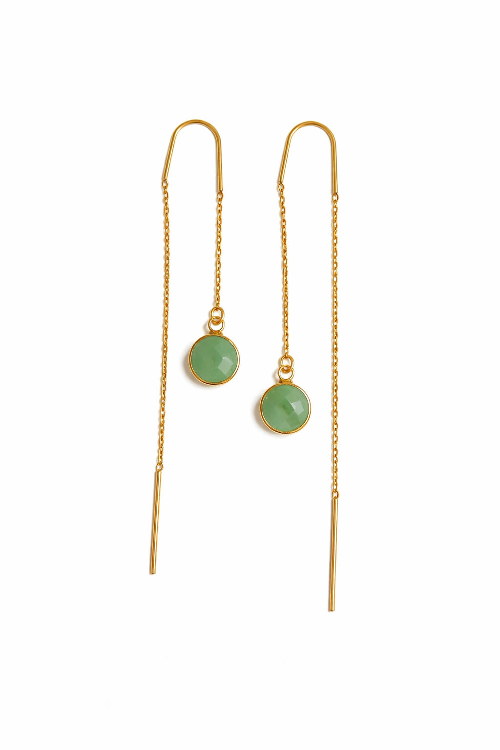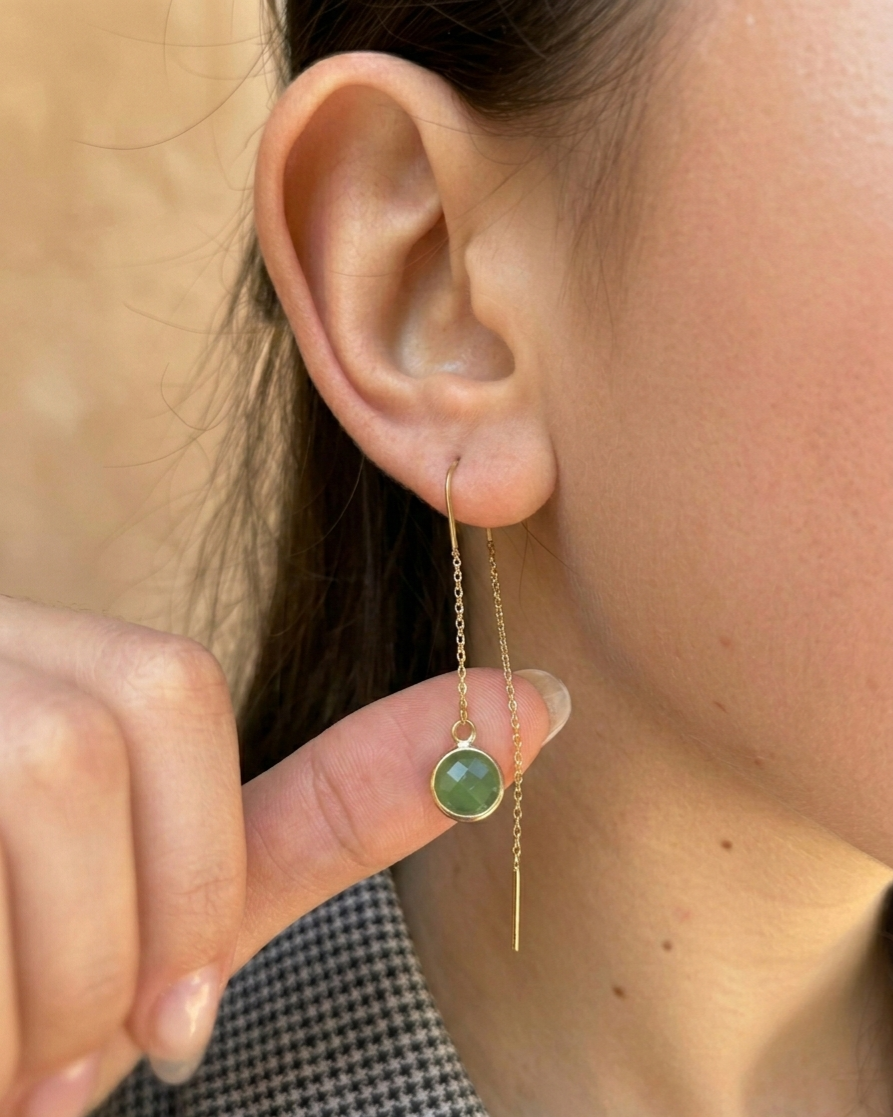 עגילי שרשרת זהב עדינים עם אבני זרקון בצבע ירוק