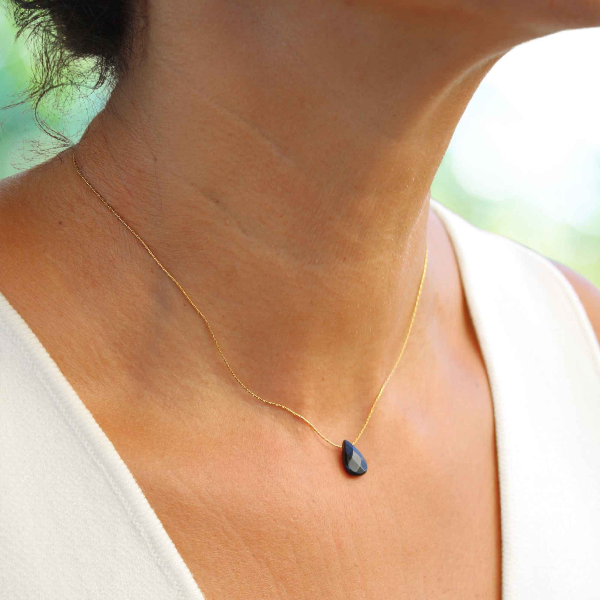 שרשרת זהב בעיצוב מינימליסטי ועדין עם תליון אבן אוניקס בצורת טיפת מים.