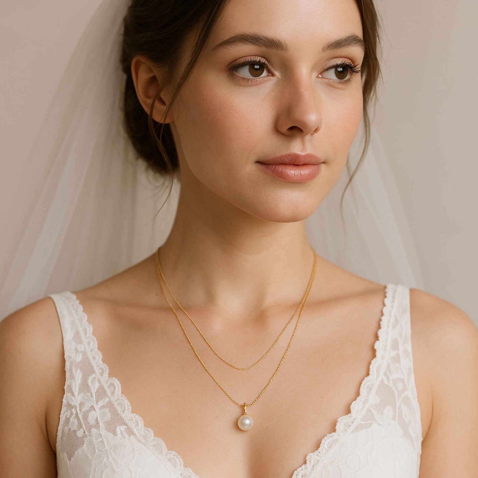 שרשרת שכבות אלגנטית עם פנינה עגולה בעיצוב נקי ועדין.