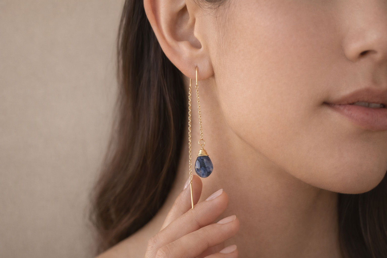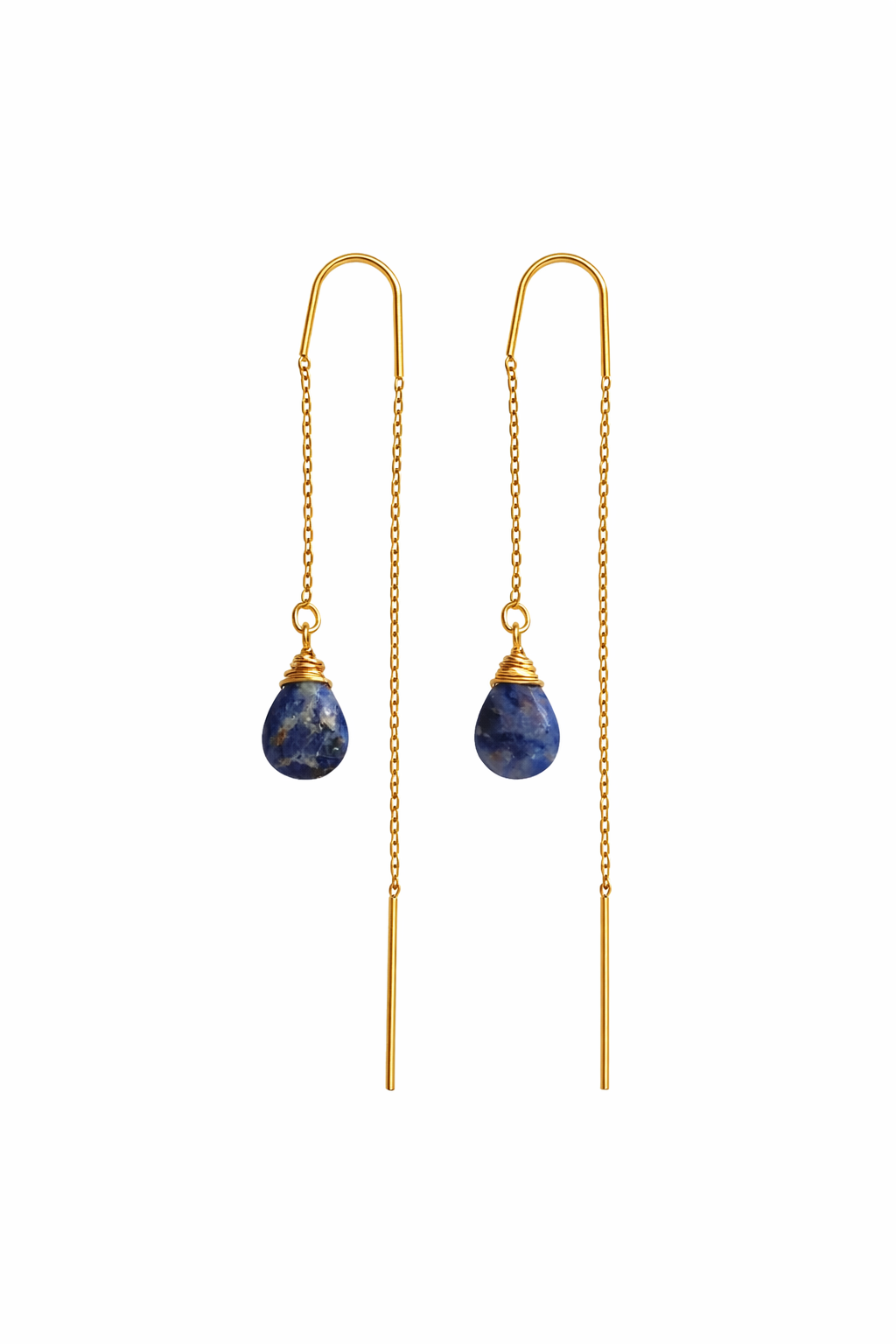 עגיל שרשרת אבן לפיס, בשילוב ליפוף זהב למראה זוהר ונקי, עגיל עם נוכחות עדינה שמתאימה לאירוע למתנה וגם ליום יום. צבע האבן יכןלה להשתנות במעט בשל היותה טבעית